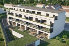 Elke zondag welkom op ons kantoor van 10u-12u voor meer info over de nieuwbouwprojecten! Appartement A1 0.1 bevindt zich links op het gelijkvloers van de linkerblok. Het appartement heeft een bewoonbare oppervlakte van 129 m² groot en heeft 3 slaapkamers en 2 badkamers! Het appartement heeft een ruim terras en een privétuintje met een poortje met onmiddellijk toegang naar de fietsenstalling en autostandplaatsen. Vooraan in de inkomhal bevindt zich een gastentoilet. Via de nachthal bereikt men de 3 slaapkamers waarvan 1 met eigen badkamer. Een 2 de badkamer wordt voorzien met een douche. Een aparte berging is aanwezig. De leefruimte is ruim en heeft directe toegang naar het terras via een schuifraam. Het terras is zuidoostelijk georiënteerd. De afwerking is hoogwaardig en elke koper kan zijn eigen keuze van afwerking kiezen! De mogelijkheid om aan te kopen aan 6% BTW i.p.v. 21% maken dit zeer interessante appartementen! Project Oriole is een kleinschalig en energiezuinig project waar men nu nog uitzonderlijk kan genieten van slechts 6% BTW i.p.v. 21% BTW! Het Project bestaat uit 2 blokken met in totaliteit 10 appartementen. Deze unieke woonappartementen hebben een praktische indeling en worden volledig afgewerkt. Aan de achterzijde van het gebouw bevinden zich de bovengrondse autostandplaatsen. Op het gelijkvloers hebben de appartementen eigen tuintjes; op de bovenste verdiepingen prachtige terrassen. In de tuin wordt een gemeenschappelijke fietsenstalling voorzien en het perceel is reeds omheind. Deze duurzame appartementen dragen het label “BEN”- appartementen, wat staat voor bijna energie-neutraal; er wordt reeds gewerkt met warmtepompen! Deze Residentie “Oriole” bevindt letterlijk op 3 min wandelen van de winkel-wandelstraat. Brood en fruit, eten bestellen en afhalen; supermarkten, de Hema, de Action… alles is vlakbij. Ook het openbaar vervoer is vlakbij. Anderzijds grenst Residentie Oriole aan de achterzijde tot tegen een prachtig natuurgebied waar men enerzijds uren kan wandelen of met de fiets het fietsroutenetwerk op richting kanaal = zalig! Pluspunten - quasi energie-neutraal! - verwarming met warmtepomp - eigen zonnepanelen - vloerverwarming - ventilatiesysteem D - aluminium ramen - hoogwaardige afwerking - ruime terrassen - 1, 2 of 3 slaapkamer-appartementen!! - fietsenstalling - bovengrondse autostandplaatsen - vlakbij de winkel-wandelstraat - en vlakbij natuurgebied en fietsenroutenetwerk! - NU nog = 6% BTW i.p.v. 21% BTW! Voor een afspraak of meer info, bel ons op ### of kom gewoon binnen op ons kantoor. Steeds welkom! En savoir plus ?
