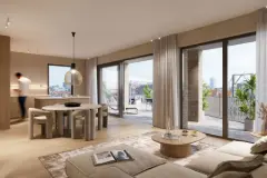 MOLENBEEK-SAINT-JEAN : Appartement spacieux avec vue sur la ville, le long du canal et une terrasse de 19m². Trois chambres à coucher, deux salles de bains et un grand living. Cet appartement haut de gamme dans le projet Depot vous fait vivre la belle vie. Construit selon le concept Future Proof. Pompes à chaleur, chauffage au sol et panneaux solaires pour garantir un peb A. Cave 5.000 €. Parking obligatoire. Frais d'enregistrement et TVA sur les constructions. TREVI : ### - ### En savoir plus ?