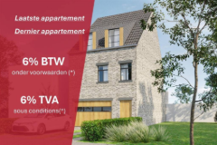 BEZOEK ONS KIJKAPPARTEMENT NA AFSPRAAK OP HET NR. ### Adres: Denijs Dillestraat 84 ### Aarschot Residentie Adelaer V, een mooie combinatie van moderne architectuur en betaalbaar wonen LAATSTE 2 TE KOOP! Net buiten het centrum van Aarschot, in een nieuwe verkaveling genaamd ‘Poortvelden’, realiseert evillas de vijfde fase van Residentie Adelaer. Dit nieuwbouwproject ligt op een boogscheut van het mooie centrum van Aarschot. Het station van Aarschot bevindt zich bovendien op amper 8 minuten fietsen van het project. Ook winkels en scholen bevinden zich in de nabije omgeving. Door haar ligging heeft Residentie Adelaer V dus alle troeven in huis om een ideale woonplek te zijn voor zowel jonge gezinnen als een ouder publiek. Maar niet alleen de ligging is een grote troef, ook de mooie en betaalbare appartementen met moderne architectuur ontworpen door Schellen Architecten. Residentie Adelaer V omvat 24 appartementen met 2 of 3 slaapkamers, allen voorzien van een mooi terras. Op het gelijkvloers genieten de appartementen van een tuintje met privatief genot. Voor een optimaal comfort is er ondergronds een parkeerkelder voorzien met autostaanplaatsen, autoboxen, private kelderbergingen en gemeenschappelijke fietsenbergingen. De appartementen beschikken over een aangename leefruimte met een open en volledig uitgeruste keuken en berging. De hoge ramen verzekeren een grote lichtinval, wat resulteert in een comfortabele en aangename woonplek. De oppervlaktes van de appartementen variëren van 82 m² tot 136 m². Elk appartement wordt afgewerkt met kwalitatieve materialen en als koper kan je jouw appartement volledig naar eigen wens en budget aanpassen. Zo voel je je meteen thuis in jouw nieuwe woonst! Alle wooneenheden zijn zeer energiezuinig en duurzaam. Ze worden allen standaard uitgerust met een lucht-water warmtepomp, vloerverwarming en een ventilatiesysteem D. Een extra troef: dankzij een E-peil 30 profiteer je ook nog eens 5 jaar lang van 50% korting op jouw onroerende voorheffing. Kortom, met Residentie Adelaer V kies je voor duurzaam en kwalitatief wonen nabij het mooie centrum van Aarschot! Prijs appartement vanaf 243.615,00 EUR En savoir plus ?