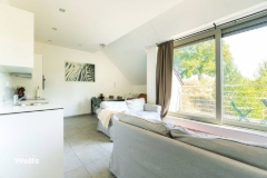 Située au cœur de MeuseView, la Résidence Edgar représente le bien-être, la convivialité et les services. En effet, bénéficiez d'espaces communs propices à l'échange (séjour, salle polyvalente, salle de sport, ...), d'un cadre de vie apaisant au coeur d'un parc naturel d'environ 20 hectares ainsi que d'une plateforme interactive faisant office de conciergerie virtuelle. Un confort de vie sans pareil ! Au sein de cette résidence, l'Immobilière Wolfs a le plaisir de vous présenter ce magnifique appartement neuf avec belle terrasse couverte, jardin et garage. Excellentes performances énergétiques ! Vente sous régime TVA ! Ss-sol : espace garage privatif (porte à placer), espace vélos équipé de vélos électr. à partager. Rez : hall d'entrée commun, hall d'entrée privé donnant sur la pièce de vie avec cuis. équ., 2 ch., sdd, terrasse couverte et jardin privatif. Profitez également d'espaces communs : séjour, salle polyvalente avec coin frigo et pont d'eau que vous pouvez privatiser sur demande, buanderie avec machines prof. et salle de sport. Divers : DV alu., ch. c. sol par pompe à chaleur, compteurs indépendants, électr. conforme, superficie habitable : +/- 54 m² et +/- 22 m² de terrasse, système de ventilation VMC. Infos sur cette résidence : ### Infos énerg. : PEB No. : 20240513500467 , PEB : B , E spec : 100 kWh/m².an, E totale : 6.495 kWh/an. CONCEPT UNIQUE, NE TARDEZ PAS A LE DECOUVRIR ! Plus d'infos et plans téléchargeables sur ### ! En savoir plus ?