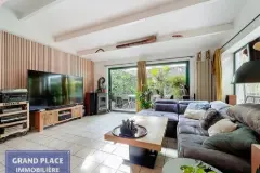Situé dans un quartier calme et verdoyant de Wezembeek-Oppem, à quelques pas des transports en commun, des commerces et des grands axes, ce spacieux duplex de ±160 m² réparti sur le rez-de-chaussée et le premier étage d’une maison de deux logements offre un cadre de vie pratique et serein, sans charges communes. Le bien comprend un hall d’entrée privatif avec vestiaire et WC, une cuisine équipée ouverte sur la salle à manger et un grand salon lumineux avec de larges baies vitrées donnant accès à une terrasse et au jardin privatif. À l’étage, trois chambres confortables, une salle de bain avec baignoire, douche et double lavabo, ainsi qu’un second WC. Le logement dispose également d’une cave avec buanderie, de châssis double vitrage et d’un chauffage individuel au gaz à condensation. À l’avant, un studio de ±19 m², entièrement aménagé avec douche et WC, fait partie du lot. Il peut être intégré facilement dans l’espace principal ou convenir pour une activité professionnelle libérale ou médicale grâce à son accès indépendant. L’ensemble se trouve dans une petite copropriété de deux unités, avec toutes les consommations privatisées. PEB C, électricité conforme, et bâtiment garanti sans amiante ( certificat disponible). Infos et visites ### En savoir plus ?