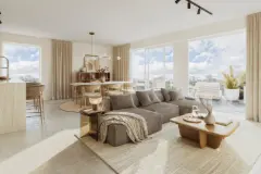 Ontdek Wetthre, een eigentijds nieuwbouwproject in het hart van Wetteren waar modern comfort en duurzame architectuur hand in hand gaan. Deze stijlvolle residentie biedt een doordachte mix van 1-, 2- en 3-slaapkamerappartementen, elk ontworpen met oog voor ruimte, licht en kwaliteit. Grote raampartijen zorgen voor een aangename natuurlijke lichtinval, terwijl de leefruimtes uitgeven op ruime terrassen of privatieve tuinen waar het heerlijk vertoeven is. De appartementen zijn volledig afgewerkt met duurzame materialen en uitgerust met moderne keukens, comfortabele badkamers en vloerverwarming. Dankzij het BEN-label (E-peil ≤ 20), warmtepomp, zonnepanelen en uitstekende isolatie geniet u van een energiezuinige woonervaring met een lage energiefactuur. Wetthre ligt op een centrale en toch rustige locatie, op wandelafstand van winkels, scholen, horeca en het station van Wetteren. Fietsers en wandelaars vinden in de omgeving tal van groene routes. Ondergronds beschikt de residentie over een parkeergarage met private staanplaatsen, bergingen en fietsenstallingen. Ruim en lichtrijk tweeslaapkamerappartement met een doordachte indeling en een aangenaam terras van ca. 6,5 m². De open leefruimte met geïntegreerde keuken biedt een optimaal gevoel van ruimte en comfort, met grote raampartijen die zorgen voor veel natuurlijk licht. Verder beschikt het appartement over twee volwaardige slaapkamers, een moderne badkamer, een apart toilet en een praktische berging. En savoir plus ?
