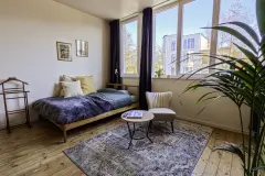 charmant studio renové Ce charmant studio, prêt à emménager, a récemment été entièrement rénové. Il est situé dans un petit immeuble sans charges partagées, à quelques minutes à pied du Rivierenhof. Situé au premier étage, le studio est spacieux avec de hauts plafonds et de grandes fenêtres baignant de lumière naturelle. De plus petites fenêtres se trouvent à l'arrière de l'appartement, où un toit peut être aménagé, créant ainsi une terrasse exposée plein sud (environ 12 m²), voir photo. La cuisine ouverte, équipée d'une plaque de cuisson au gaz et d'un réfrigérateur, donne sur le séjour. La salle de bain est équipée d'une douche à l'italienne moderne et d'un branchement pour lave-linge. Les toilettes sont séparées. Un espace de rangement est disponible au sous-sol. Les transports en commun s'arrêtent à quelques minutes à pied de l'appartement. Des supermarchés se trouvent de l'autre côté de la rue, où se trouve également une station Vélo. L'appartement est situé dans un quartier résidentiel calme, avec des commerces accessibles à pied. Au bout de la rue se trouve le quartier de l'Arena, actuellement en rénovation complète, qui embellira son aspect. Des certificats récents pour l'électricité, le CPE et l'amiante sont disponibles. En savoir plus ?