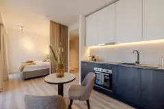 Trianon Invest vous présente STAY@BRUSSELS, un nouveau complexe immobilier idéalement situé entre le quartier européen, l’OTAN, l’aéroport et le futur Mediapark. 80 appart-hôtels entièrement meublés, peints et équipés (studios et 1 chambre) de 39 à 57 m², avec un service de gestion complet et des revenus mensuels fixes garantis. Un immeuble moderne, aux finitions soignées et aux performances énergétiques élevées (PEB B à C+) + triple vitrage. Vente sous droits d’enregistrement (terrain) et TVA (constructions), et récupération de la TVA. Les appartements se composent d'une entrée avec un espace bureau attenant, une cuisine équipée (plaque de cuisson, évier, robinet de cuisine, hotte, + lave-vaisselle uniquement dans les appartements 1 chambre), un coin à dormir, une salle de douche et une toilette. Sols en parquet stratifié dans la pièce de vie et carrelage dans les pièces d'eau. Vos avantages : - Revenus supplémentaires en cas de forte occupation - Aucune gestion ni entretien à assumer : tout est pris en charge - À terme, vous redevenez plein propriétaire avec plusieurs options - Gestion professionnelle assurée par un exploitant reconnu Mobiliers inclus dans la vente: 1 fauteuil, 1 table d'appoint, 2 tables de chevet, 1 lit double, 1 table avec 2 ou 3 chaises, 1 télévision, 1 chaise ou pouf sous le meuble de bureau Contactez-nous pour plus d'informations et programmer une visite : ### En savoir plus ?
