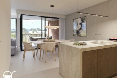 Découvrez cet appartement lumineux et moderne situé au rez-de-chaussée du projet neuf Ernest à Oudenaarde, offrant un espace de vie fonctionnel et confortable dans un environnement résidentiel privilégié. Avec une superficie habitable de 108,8 m² (surface brute), ce bien immobilier se distingue par ses espaces bien agencés et ses installations modernes. L'entrée vous mène à une vaste zone comprenant une salle de bains équipée d'une douche à l'italienne et d'un double lavabo, ainsi qu'une pièce séparée pour les toilettes. La propriété comprend également deux chambres spacieuses, idéales pour accueillir famille ou amis, ou pour aménager un bureau à domicile. La pièce maîtresse de cet appartement est la cuisine ouverte adjacente à un grand séjour, qui donne accès à une terrasse généreuse de 32 m². Cet espace extérieur est parfait pour profiter des beaux jours, organiser des repas en plein air ou simplement se détendre dans un cadre agréable. La conception contemporaine de l'ensemble offre une harmonie entre fonctionnalité et style, avec des matériaux de qualité et une attention portée aux détails. La présence d'une grande terrasse permet également d'apporter une luminosité naturelle exceptionnelle dans le séjour, renforçant la sensation d'espace et de confort. La résidence est équipée d’un ascenseur facilitant l’accès, avec une gestion efficace de l’énergie grâce à une isolation en triple vitrage et un chauffage solaire, assurant une consommation responsable et économique. Situé dans un quartier résidentiel non soumis à des restrictions particulières, cet appartement bénéficie d’un environnement calme, tout en étant à proximité des commodités essentielles. La localisation offre un accès facile aux transports et aux infrastructures urbaines, ce qui en fait un choix idéal pour ceux cherchant à combiner confort moderne et qualité de vie. Le prix de cette belle opportunité s'élève à 392 686 euros, charges comprises, sans TVA applicable. La disponibilité immédiate permet aux futurs propriétaires d’envisager rapidement leur installation. Pour découvrir cette propriété unique ou pour organiser une visite, n'hésitez pas à nous contacter. Nous serons ravis de vous accompagner dans votre projet immobilier à Oudenaarde. En savoir plus ?