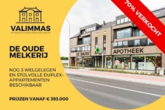 VALIMMAS verkoopt duplex-appartement A5 in "Residentie De Oude Melkerij", een welgelegen en stijlvol nieuwbouwproject met 8 comfortabele appartementen, een gelijkvloerse handelsruimte (apotheek), 19 (onder- en bovengrondse) autostandplaatsen/garages, 8 kelders en een gemeenschappelijke fietsenstalling. Appartement A5 (± 133m² + 2 terrassen) omvat oa. een inkomhal, een berging/wasplaats, een living met open ingerichte keuken (keukenkasten, inductiekookplaat, dampkap, combi-oven, vaatwas, koelkast, gootsteen), een nachthal met toilet, drie mooie slaapkamers, en twee comfortabele badkamers. Met alle hedendaags comfort en onmiddellijk instapklaar ! Het appartement werd inmiddels ook volledig geschilderd. Gelegen langsheen de N9, dewelke recent volledig heraangelegd wordt. Kort bij centrumfuncties (winkels, scholen, sportcomplex, park, station en bushaltes…) en met makkelijke verbindingen naar Brussel, Ring 0, E40, A12, industriezones Zellik… Contacteer ons gerust vrijblijvend voor meer informatie: ### - ### En savoir plus ?