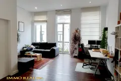 Ben je op zoek naar een unieke woonbeleving met klasse en karakter? Deze uitzonderlijke duplex van 175m² combineert de charme van een historisch pand met de luxe en het comfort van vandaag. Gelegen in een kleinschalig complex van slechts zes units geniet je hier van een rustige en exclusieve setting, middenin een stijlvolle omgeving. Het appartement werd in 2023 volledig gerenoveerd en afgewerkt met hoogwaardige materialen en oog voor detail. De open benedenverdieping ademt een loftgevoel en verbindt wonen en koken één mooi geheel. De ruime in notelarenhout uitgevoerde designkeuken van Dovy met granieten blad en hoogwaardige toestellen is een echte blikvanger. De grote raampartijen zorgen voor overvloedig licht en versterken het open gevoel. Deze duplex beschikt over twee ruime slaapkamers, elk voorzien van ingemaakte kasten, waardoor comfort en functionaliteit hand in hand gaan. De vloeren zijn bekleed met een knappe visgraat parket, die mooie overloopt in de eiken trap. Daarnaast geniet je van twee terrassen en een gezellige voortuin. Qua techniek is dit appartement helemaal mee met zijn tijd: vloerverwarming, ventilatiesysteem en warmtepomp zorgen voor energiezuinig en duurzaam wooncomfort. Daarnaast geniet je van slimme domotica om je lichten en gordijnen aan te sturen. Een echte eyecatcher voor wie luxe, stijl en rust wil combineren! Voor meer info of een bezoek: 📧 ### 📞 ### Meer foto’s en info via: ### En savoir plus ?