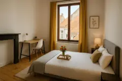 Move into a bright, fully furnished room in a spacious, recently renovated house shared with 5 friendly flatmates. The room offers a comfortable bed, desk, wardrobe, and plenty of natural light – perfect for studying or relaxing after a long day. 650 (Rent) + 100 (Utilities) 📍 Prime Location – Saint-Gilles Centrally located between Place Van Meenen and Le Châtelain, with excellent tram and bus connections. Just 15 minutes to ULB/VUB and a short ride to Brussels-Midi station. The area is buzzing with cafés, bars, and local shops – everything you need within walking distance. 🏠 The House - Fully equipped kitchen - 2 modern shared bathrooms - High-speed internet - Bi-weekly cleaning included Enjoy the comfort of a well-maintained home with a social, respectful atmosphere – perfect for focused studies and a great social life in Brussels. En savoir plus ?