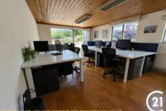 Infos et visites, contactez - Frédérique : ### - ### . Villa moderne spacieuse aménagée actuellement en bureaux en très bon état général et avec des matériaux de qualité (sols en carrelage et plancher de chêne, balustrades en métal peintes). Possibilité de reconversion en 4 chambres, 2 salles d'eau avec plans projetés. Jardin actuellement offrant la possibilité d' un parking de 10 voitures. Il y a également un emplacement extérieur pour deux voitures à l'avant de la maison. Elle se situe dans un quartier calme de type résidentiel en zone rurale. L'accessibilité des moyens de communication est aisée avec le bus à 300m et la gare de Genval proche. La villa est aussi bien située par rapport aux écoles et aux Papeteries de Genval. Elle se compose comme suit: Au rez de chaussée: Hall, vestiaire, cage d'escaliers, accueil, secrétariat, grand bureau paysager de +/- 80 m2 avec escalier vers le sous-sol . Au premier étage: Cage d'escalier, deux grandes salles de réunion de +/- 24 et 16 m2 avec mezzanine vers bureau paysager. Grenier aménagé en deux grandes pièces avec WC. Sous-sols: Une cuisine équipée (frigo, hotte, taque, évier) pour le personnel, locaux techniques, logette WC. Alarme. Téléphone, télédistribution. Reliée aux égouts, les murs et la toiture du grenier sont isolés, le chauffage central est au gaz (Chaudière à condensation) avec des radiateurs équipés de vannes thermostatiques. Bon PEB C. Toutes les informations (plans, vidéo, visite 3D) via le lien suivant : ### . Infos et visites, contactez - Frédérique : ### - ### . En savoir plus ?