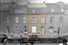 Pour tout renseignement et visite, veuillez nous contacter au : ### Maison 2 façades de 105m² nets à rénover, située sur une parcelle de 2a14ca, comprenant 2 grandes chambres, une terrasse, un jardin et une cave. La maison est raccordée aux égouts. Composition : Au rez-de-chaussée : hall d’entrée, salon, salle-à-manger, cuisine, salle de douche avec WC Au 1er étage : 2 grandes chambres Au 2ème étage : grand espace accessible par échelle escamotable Sous-sol : cave avec citerne d’eau de pluie (non raccordée) À l’extérieur : terrasse, abri de jardin, jardin Équipements : Chaudière à condensation au gaz Vaillant (2019) Toiture isolée en tuiles (2013) Compteur électrique bi-horaire Électricité non conforme Châssis PVC double vitrage Boiler électrique RC : 535 € PEB C – n°20250621005817 – 222kwh/m².an – 33.875kwh/an Faire offre à partir de 95.000 euros Plus de renseignements : ### En savoir plus ?