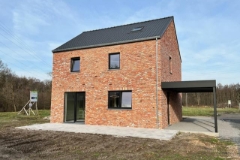 Alleenstaande nieuwbouwwoning met 3 slaapkamers op een perceel van 6are 69ca in een rustig en groen gelegen verkaveling. De woning is als volgt ingedeeld: gelijkvloers: inkomhal met trap naar verdieping, toilet met handwasbakje, woonkamer opgedeeld in zithoek en eethoek, afzonderlijke keuken, berging/technische ruimte, carport voor 1 voertuig; verdieping: nachthal, 3 slaapkamers, badkamer met douche lavabo en toilet. De kopers kunnen de afwerking van keuken, badkamer, vloeren en binnendeuren nog mee kiezen volgens de budgetten hiervoor voorzien in het lastenboek. Zo kunnen zij de woning naar hun eigen smaak mee inrichten. Er is tevens een mogelijkheid om de woning zonder deze afwerking aan te kopen. En savoir plus ?