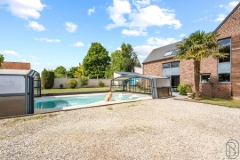 Superbe habitation, entièrement rénovée en 2007, offrant des espaces de vie exceptionnels et une luminosité remarquable. Rez-de-chaussée : Un beau hall d’entrée avec vestiaire et WC séparé donnant sur un vaste living de 100 m² avec feu ouvert comprenant, une cuisine full équipée ouverte sur une salle à manger et un lumineux salon. Une grande chambre complétée par une salle de bain moderne avec baignoire, sauna et douche à l'italienne. Idéale pour une suite parentale ainsi qu'une buanderie À l’étage : Trois belles chambres dont une avec espace dressing, deux salles de douche complémentaires, un large palier et mezzanine avec coin bureau En extérieur Une piscine chauffée avec abri coulissant une belle terrasse avec pergola bien orientée ainsi qu'un beau jardin. Technique: électricité bi-horaire tri-phasé conforme, chauffage sol (mazout), chassis aluminium DV, citerne, abri de jardin, accès latéral avec portail électrique sur parking intérieur sécurisé. En savoir plus ?