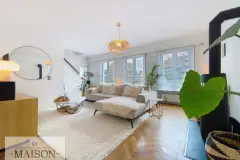 Quartier Joséphine Charlotte, à proximité de toutes les facilités de l'Avenue Georges Henri, charmante maison entièrement rénovée avec goût et matériaux de qualité, d'une superficie habitable de +/- 240 m², elle bénéficie d'un beau jardin de ville. Elle se compose comme suit : Au rez-de-chaussée : - Hall d'entrée avec toilette invités - Séjour de (parquet) - Cuisine américaine super équipée (parquet) - Salle à manger (parquet) - Terrasse de +/- 20 m² et jardin de +/- 60 m² orientés Ouest Entre-sol : WC Au 1er étage : - Hall de nuit - Chambre 1 de +/- 16 m² (parquet) - Chambre 2 de +/- 15 m² (parquet) avec accès à une terrasse de +/- 16 m² orientée Ouest - Salle de bains avec WC (carrelage) Au 2ème étage : - Hall de nuit - Chambre 3 de +/- 13 m² (parquet) - Chambre 4 de +/- 10 m² (parquet) - Salle de douche - WC Au sous-sol : - Cave - Buanderie - Chaufferie A 30 mètres de la maison : - Garage box pour un supplément de 50.000€ Informations complémentaires : - Rénovations complètes en 2020 * Plomberie * Isolation acoustique entre les plateaux * Toiture * Chassis double vitrage PVC/Alu * Chaudière au gaz à condensation - Système d'alarme - Adoucisseur d'eau - Vidéophone - Electricité conforme - PEB D- En savoir plus ?