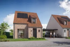 Située dans la nouvelle zone résidentielle de Heestert, cette maison individuelle à Zwevegem offre un cadre de vie paisible et convivial. La propriété se trouve au 18 Schoolstraat, dans un quartier calme et familial, à proximité des écoles et du centre du village. La parcelle de 307 m² accueille une maison moderne de conception architecturale contemporaine avec quatre façades, assurant une luminosité optimale dans toutes les pièces. Cette maison, en cours de construction et prévue pour 2025, présente une surface habitable d'environ 144 m². Elle comprend trois chambres, offrant un espace suffisant pour une famille. La disposition intérieure est pensée pour le confort, avec une pièce de vie lumineuse, une cuisine ouverte entièrement équipée avec îlot, une salle de bain moderne, ainsi qu'une réserve pratique. La propriété dispose également d’un espace grenier accessible, d’une terrasse agréable, d’une oprit et d’un carport pour le stationnement. L’aspect énergétique de la maison est particulièrement mis en avant avec un indice E-peil de 19, grâce à la présence d’une pompe à chaleur géothermique, de panneaux solaires, du double vitrage et d’un système de ventilation avec récupération de chaleur. La construction est prévue dans le respect des normes actuelles pour assurer une consommation énergétique optimale et un confort durable. La maison est vendue clé sur porte, permettant aux futurs propriétaires d’emménager sans souci. En savoir plus ?