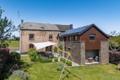VENDU !! MCA Immobilier vous présente cette charmante maison sur les hauteurs de Durbuy, à seulement 2 minutes en voiture du centre-ville. Ce bien bénéficie d'une belle vue dégagée et de deux terrasses dont une partiellement couverte avec une cuisine extérieure équipée (bbq au gaz, hotte,…). Il se compose d'un hall d'entrée avec toilette, un séjour avec cassette à bois, salle à manger, une cuisine équipée, un garde-manger, une arrière cuisine, une buanderie et un garage. A l'étage, vous trouverez 4 chambres dont une avec salle de bain privative et une salle de bain très spacieuse. Cette maison est idéale comme seconde résidence tant pour y habiter ! Haut niveau de finition avec notamment l’utilisation de la pierre bleue dans et à l’extérieur de la maison. Citerne d'eau de pluie. Infos et visites au ### ou ### . En savoir plus ?