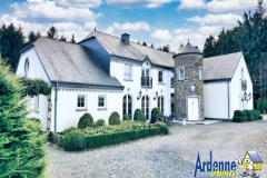 Rez : hall d'entrée, salon avec poêle à bois, grande salle à manger donnant sur terrasse via grandes baies vitrées, cuisine équipée (lave-vaisselle, four, micro-ondes, évier, cuisinière électrique, hotte, frigo), arrière cuisine avec accès terrasse (équipée de taques au gaz, évier, hotte, frigo + espace avec sèche-linge et lave-linge + espace douche + 1 wc + local technique), grand hall d'entrée menant vers 1 spacieuse chambre avec vue splendide sur le domaine, 1 salle de bain (douche, 2 lavabos, baignoire) 1 wc, 1 pièce technique avec chaudière à mazout et espace de rangement. Etage +1 : 4 chambres ( 1ère chambre : lit 2 pers. + lit bébé, 2ème chambre : 1 lit pour 2 pers. + lits superposés, 3ème chambre :1 lit pour 2 pers.), 1 salle de bain ( 2 lavabos, baignoire, 1 wc ), 1 grande mezzanine (avec espace bureau, coin lecture, espace détente). Dépendances non attenantes : 1 garage avec espace de rangement (pour meubles de jardin, etc.), 1 cuisine de jardin. Info + : Terrasse couverte avec sauna et jacuzzi, magnifique jardin entourant la propriété avec 2 étangs (dont un des deux avec espace barbecue couvert) et un parc animalier avec daims. Domaine possédant 4 hectares de bois avec divers petits sentiers permettant de se promener en toute tranquillité. Ensemble de propriété clôturé (idéal notamment pour les animaux de compagnie). Maison équipée de 32 panneaux solaires. Demande pour gîtes de 9 personnes déjà acceptée! Borne de recharge pour voiture électrique. En savoir plus ?