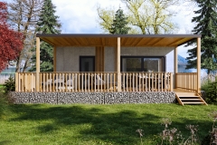 Deze vakantiewoning van 8 meter lang, 5,8 meter breed en 3,4 meter hoog oogt en voelt bij de eerste indruk al als thuis. De kleur antraciet versterkt de kwaliteitsrijke uitstraling van deze 4-persoons vakantiewoning nog meer, net als de houtlookelementen die aansluiten bij de bosrijke omgeving. Het terras, waar u vanuit de living zo opstapt dankzij de schuifdeuren, staat verder garant voor een mooi uitzicht over de Ossiacher See en de omringende bergflanken. Dit terras, dat rondom de vakantiewoning wordt gebouwd, is gemaakt van geïmpregneerd dennenhout, net als het hekwerk en de poort ertoe. Qua interieur is de voornaamste blikvanger de master bedroom die niet alleen ruim is, maar ook verrijkt is met twee kasten naast elke zijde van het tweepersoonsbed. Hangkasten, een spiegel en haakjes om de jas op te hangen vergroten het comfort nog meer. Een schuifdeur verschaft bovendien rechtstreeks toegang tot het terras. De tweede slaapkamer bestaat uit twee eenpersoonsbedden met daartussen een nachtkastje. Een kledingkast, hangkasten en kledinghaakjes kleuren deze ruimte verder in. De woonkamer is sfeervol te noemen met een zit- en loungehoek en een fraaie open keuken in een L-vorm. Deze keuken bestaat uit een kraan met rvs spoelbak, een vaatwasser, een inbouwkoelkast en -vriezer, een ingebouwde magnetron en een afzuiging boven de kookplaat. De toegangsdeur verschaft rechtstreeks toegang tot de living. Wie doorloopt treft in de hal tussen de woonkamer en de slaapkamers de badkamer. Deze is ingericht met een ruime douchecabine, toilet en wastafel met fontein en spiegel. Naast de badkamer is een tweede toilet in een separate ruimte. En savoir plus ?
