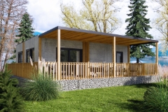 Het vakantieverblijf van 9 meter lang, 4,5 meter breed en 3,5 meter hoog oogt en voelt bij de eerste indruk al als thuis. De kleur antraciet versterkt de kwaliteitsrijke uitstraling van deze 2-persoons vakantiewoning nog meer, net als de houtlookelementen die aansluiten bij de bosrijke omgeving. Het terras, waar u vanuit de living zo opstapt dankzij de schuifdeuren, staat verder garant voor een mooi uitzicht over de Ossiacher See en de omringende bergflanken. Dit terras, dat rondom het vakantieverblijf wordt gebouwd, is gemaakt van geïmpregneerd dennenhout.Qua interieur is de voornaamste blikvanger de master bedroom die niet alleen ruim is, maar ook verrijkt is met een ligbad en meer dan genoeg kastruimte biedt. Buiten een reguliere kast zijn er in deze ruimte ook hangkasten om kleding op te bergen en er staat een nachtkastje. U kunt bovendien vanuit deze slaapkamer via een aparte toegangsdeur het terras betreden.Ook de woonkamer is ruim te noemen met een royale zit- en loungehoek en een fraaie open keuken met kookeiland. Deze keuken bestaat uit een kraan met rvs spoelbak, een vaatwasser, een inbouwkoelkast en vriezer, een ingebouwde magnetron en oven en een afzuiging boven de kookplaat. Een fraaie garderobe in de hal tussen de slaap en woonkamer bevestigt de algemene indruk van deze vakantiewoning. Aan de andere kant van de garderobe is de complete badkamer gesitueerd die is ingericht met een ruime douchecabine, toilet en wastafel met fontein en spiegel. En savoir plus ?