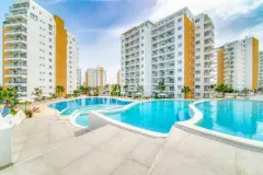 Appartementen Dicht bij de Zee in İskele, Noord-CyprusDe Iskele-regio van Cyprus ligt aan de noordoostkust van het eiland. Iskele stond op de eerste plaats in de lijst van meest geschikte kustgebieden voor investeringen van het wereldberoemde tijdschrift Forbes. De regio, die vooral de voorkeur heeft voor investeringen, ligt op korte rijafstand van Gazimağusa, Lefkoşa en Girne. İskele beschikt over vele faciliteiten zoals; restaurants, uitgaansgelegenheden, markten, supermarkten, apotheek en ziekenhuis.Appartementen te koop in İskele, Noord-Cyprus liggen op 450 m van de snelweg İskele-Karpaz, 1 km van de zee, 2,5 km van İskele, 4 km van MacKenzie Bay, 5 km van Pera MacKenzie Beach&Club, 13 km van Near East College , 16 km van het Gazimağusa State Hospital, 17 km van de Eastern Mediterranean University, 47 km van de luchthaven Ercan en 73 km van de internationale luchthaven van Larnaca.De te koop staande appartementen bevinden zich in 5 blokken van elk vijf verdiepingen. Het complex beschikt over een gemeenschappelijke tuin met beveiligingscamera's. Voor elk appartement is er een buitenparkeerplaats. Het complex beschikt over een buitenzwembad, restaurant en café, verhuurkantoor en winkels.Alle appartementtypes zijn open ontworpen. De appartementen zijn voorzien van keukenkasten, badkamer- & toiletkasten en inbouwkasten. Daarnaast zijn er comfortverhogende voorzieningen zoals centraal satellietsysteem, internetinfrastructuur, airconditioninginfrastructuur en intercomsysteem ECN-00425 En savoir plus ?