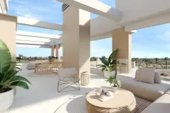 APPARTEMENT AU DERNIER ÉTAGE DANS UNE RÉSIDENCE PRIVÉE EXCLUSIVE DANS LA PROVINCE DE MURCIE.~~Nouveau développement comprenant 42 appartements de luxe et penthouses avec 2 et 3 chambres à coucher, 2 salles de bains, cuisine ouverte avec salon spacieux, armoires encastrées et terrasses.~~Ce logement comprend 3 chambres et 2 salles de bains (dont une en suite), cuisine-salon-salle à manger et une grande terrasse privée.~~Ce complexe exclusif dispose d'une zone commune paysagée qui comprend une fabuleuse piscine contemporaine, un club social et des espaces verts. ~~Tous les appartements sont dotés d'un parking souterrain et d'une salle de stockage.~~~L'ensemble est situé dans un complexe privé, avec une entrée principale et une sécurité 24h/24h. Le complexe est conçu autour d'un impressionnant espace vert de 126 000 m2.~~Il comprend des sentiers de promenade et des pistes cyclables, des installations sportives, des courts de paddle et de tennis, un parcours de mini-golf, des jardins, des parcs pour chiens, des aires de loisirs, un clubhouse.... C'est également dans cette zone centrale que se trouve le joyau de la station, un lac artificiel cristallin de près de 17 000 m2 de surface d'eau, entouré de plages de sable blanc et de palmiers, apportant un morceau des Caraïbes à la région de Murcie.~~Il y a deux îles sur le lac, dont l'une possède son propre bar, ainsi que des "chiringuitos de plage" répartis autour du lac.~~Le complexe est stratégiquement situé à moins de 4 km de la plage et de la ville de Los Alcázares, où l'on peut pratiquer divers sports nautiques, entouré de plusieurs terrains de golf et de la ville de Cartagena, à moins de 15 minutes en voiture et à 22 km de l'aéroport de Murcie, ce qui permet de disposer d'une vaste offre culturelle, gastronomique et sportive à portée de main. En savoir plus ?