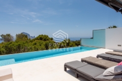 Royal Estates presenteert met trots deze geweldige woning met privézwembad en prachtig uitzicht op zee richting de berg Es Vedra. Gelegen aan de westkust van Ibiza, is dit moderne huis volledig gerenoveerd en klaar om je mediterrane dromen te vervullen, met de essentie van de Ibiza levensstijl. Met in totaal 3 slaapkamers, inclusief een apart gastenappartement en een eigen nachtclub. INTERIEUR Can Aurora is een unieke woning verdeeld over twee verdiepingen. Als je binnenkomt via de hoofdingang op de eerste verdieping, wordt je aandacht meteen getrokken naar het prachtige uitzicht op zee. Met in totaal 3 slaapkamers en 3 badkamers is dit huis kant-en-klaar met het gebruik van hoogwaardige materialen. De totale constructie bestaat uit 186m2 woonruimte verdeeld over beide verdiepingen. Eerste verdieping: Bij binnenkomst in het huis vinden we de woonkamer met een open keuken en eethoek, verbonden met een groot buitenterras met een privézwembad en prachtig uitzicht op zee. Op deze verdieping bevinden zich de hoofdslaapkamer met en-suite badkamer en een tweede slaapkamer met een aparte badkamer die ook dienst doet als gastentoilet. De bovenste verdieping is voorzien van vloerverwarming, ideaal voor de wintermaanden. Begane grond: Bereikbaar via een buitentrap, heb je een apart gastenappartement compleet met keuken, woonkamer, slaapkamer en badkamer en-suite. Dit gedeelte is verbonden met een gezellige en privé buitenpatio, en bevat extra opslagruimte en de wasruimte. Nachtclub: Op dezelfde begane grond vind je de ingang van een privé-nachtclub, professioneel gebouwd met de hoogste technologie op het gebied van geluid, verlichting en geluiddichte muren. Het omvat een volledig uitgeruste bar en een badkamer, perfect voor het vermaken van gasten om een geweldige muziekervaring te creëren. EXTERIEUR Bij aankomst vanaf de hoofdstraat, vind je'je privéparkeerplaats voor twee auto's boven het huis. Kom binnen via de hoofdingang en daal het trappenhuis af naar de hoofdingang. De buitenkant en het trappenhuis zijn pas geschilderd en zeer goed onderhouden. Het open trappenhuis laat natuurlijk licht en zon binnen op elk niveau van het huis. De buitenruimtes bieden optimale privacy, zonder buren die op uw terras uitkijken: Gelegen op hetzelfde niveau als de parkeerplaats, biedt een privé dakterras een prachtig uitzicht vanaf het hoogste punt van het huis. Perfect om zonsondergangen te bekijken, een yogaterras te creëren of te genieten van een cocktail aan het eind van de dag: Het hoofdterras is verbonden met de woonkamer en beschikt over een privé overloopzwembad, omringd met comfortabele loungebedden, een gezellige eettafel en een overdekt terras. Geniet elke avond van de mooiste zonsondergangen met volledige privacy van de naburige huizen: Op de benedenverdieping vind je een aangename open patio, perfect om je eigen privéruimte te creëren. Op dit niveau vind je ook de wasruimte en extra opslagruimte: De totale gemeenschap telt 17 huiseigenaren, met een zeer goed onderhouden gemeenschap, een volledig uitgeruste fitnessruimte, het complex is gebouwd in het jaar 2010. LOCATIE Perfect gelegen hoog op de heuvels van Cala Carbo, met een geweldig uitzicht op zee in de richting van de beroemde berg Es Vedra. Comfortabel dicht bij de prachtige stranden van Cala d'Hort, Cala Carbo en Cala Vadella, en biedt gemakkelijke toegang tot nabijgelegen restaurants, een supermarkt en andere voorzieningen. Dit huis combineert modern comfort met de natuurlijke schoonheid van de westkust van Ibiza en nodigt je uit om een comfortabele en luxe mediterrane levensstijl te ervaren met prachtig uitzicht op zee en zonsondergangen. KENMERKEN: 3 slaapkamers en 3 badkamers, waaronder een apart gastenappartement Vloerverwarming op de hoofdverdieping Zeer goed onderhouden gemeenschap met gemeenschappelijke fitnessruimte Camera- en beveiligingssysteem Prachtig uitzicht op zee en zonsondergang vanaf elk niveau Volledig gerenoveerd en gebruiksklaar Privé nachtclub Aarzel niet om een bezichtiging met ons in te plannen. Deze unieke kans is een waar juweeltje dat u moet zien om het adembenemende uitzicht op zee en de adembenemende zonsondergangen te waarderen! En savoir plus ?