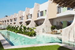 NU BESCHIKBAAR … Kies uit een model op de begane grond met groot terras aan de voorzijde en patio aan de achterzijde of een penthouse-loftwoning met terras aan de voorzijde en een groot privésolarium op het dak met pergola en zomerkeuken, gelegen op slechts 350 meter van het strand.Tuin / Begane Grond Woning: De voordeur komt uit in de ruime woonkamer met eethoek aan de zijkant. De volledig ingerichte keuken bevindt zich naast de schuifdeuren waardoor het natuurlijke zonlicht naar binnen komt. Aan de zijkant is een familiebadkamer met wastafel, toilet en douche en 2 royale slaapkamers - de hoofdslaapkamer heeft een en-suite badkamer.Penthouse Model: Een trap leidt u naar de bovenste verdieping met een groot betegeld privéterras, met toegangsdeur naar het pand. Net als de modellen op de begane grond is er een royale open woonkamer/eetkamer met de extra grote keuken - 2 slaapkamers aan de zijkant (master met en-suite). Vanuit de achterzijde van de keuken wordt toegang verkregen tot het privédaksolarium.Turn Key: Onze karakteristieke woningen zijn voorzien van alle interne en externe LED-verlichting, geïnstalleerde airconditioning, verwarmde badkamervloeren in beide badkamers, ingerichte keuken met inductiekookplaat, oven, vaatwasser, volledig meubelpakket en ondergrondse parkeergarage. Optionele opslagruimtes zijn beschikbaar tegen een meerprijs.Een selecte ontwikkeling in kenmerkende stijl van slechts 12 strandhuizen - allemaal genietend van een grote gemeenschappelijke tuin met zwembad ... maart 2025./26 voor voltooiing.van deze Makelaar in Spanjehoor je wel eens vakerVan deze ervaren expert Wil je wel eens wetenHoe die man of vrouw zal hetenen waar en hoe deze zijn zaken doetEn geeft bij de koop van een Spaanse woningeen prachtig Voucherbon cadeau En savoir plus ?