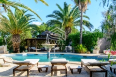 Gelegen in een prachtige omgeving vind je deze unieke 5-slaapkamer villa met Toeristische Licentie met prachtige structurele bogen, unieke details en een panoramisch uitzicht op zee en richting Formentera. Een huis dat perfect gelegen is voor diegenen die op zoek zijn naar rust en tegelijkertijd in staat zijn om gemakkelijk alle hot spots rond Ibiza-stad te bereiken, binnen een korte autorit. Deze villa is een uitstekend voorbeeld van een harmonieus huis dat met zorg is gecreëerd, met ruime kamers, veel natuurlijk licht en vloeiende overgangen tussen binnen- en buitenruimtes met royale terrassen en aangelegde tuinen. Op de begane grond heeft de villa een ruime woon/eetkamer en een volledig uitgeruste keuken, een ouderslaapkamer en-suite en twee aparte slaapkamers die een badkamer delen. Je vindt er ook een ruim terras dat voldoende ruimte biedt om te genieten van de Ibiza zon, ofwel bij het zwembad dat uitnodigt om diners te delen met familie en vrienden in de open lucht, ofwel bij de (verwarmde) jacuzzi. Op de eerste verdieping zijn er nog twee slaapkamers en-suite met privéterras. De privéterrassen hebben uitzicht op zee en op het platteland en de bergen. De hoofdslaapkamer heeft alles waar je van kunt dromen; een kingsize bed, prachtig uitzicht op zee en een privéterras. Biedt veel potentieel als investering, met alle ruimte en mogelijkheden om er een unieke woning van te maken op een geweldige locatie dicht bij de luchthaven, prachtige stranden zoals Salinas, Sa Caleta en Cala Jondal. Alle slaapkamers zijn voorzien van airconditioning, centrale verwarming, ondergrondse opslag van regenwater, automatische poort, parkeerplaats met carport en op het perceel ruimte voor vijf of zes auto's, een apart kantoor naast het huis, uitzicht op de bergen, uitzicht op zee, zonnepanelen die warm water leveren voor de jacuzzi met de mogelijkheid om het te bevestigen om ook het zwembad te verwarmen, waterpomp, tuin met tropische planten en prachtige palmbomen, buitendouche en een mooie buitenkeuken met bbq. En savoir plus ?