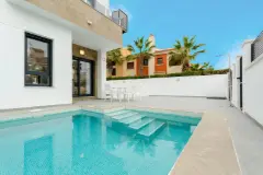 Villas neuves d'un étage avec piscine privée à Torrevieja Villas modernes dans le quartier exclusif de Los Balcones Découvrez ces superbes villas neuves, parfaitement situées dans l'urbanisation Los Balcones de Torrevieja. Conçues pour le confort et l'élégance, ces maisons de plain-pied offrent des intérieurs spacieux, des finitions de haute qualité et une piscine privée, ce qui en fait le choix idéal pour ceux qui recherchent un style de vie méditerranéen moderne. Situées dans un quartier calme et bien desservi, ces villas sont entourées d'un large éventail de services, notamment des restaurants, des bars, des centres commerciaux et des établissements de santé, ce qui garantit leur commodité et une qualité de vie élevée. Conception spacieuse et fonctionnelle Chacune des 8 villas indépendantes est construite sur un généreux terrain de plus de 400 m², offrant ainsi un vaste espace extérieur. Les maisons disposent de 3 chambres spacieuses et 2 salles de bains entièrement équipées. Un grand salon et une salle à manger ouverts, conçus pour favoriser la lumière naturelle et le confort. Une cuisine ouverte moderne, parfaitement intégrée à l'espace de vie. Une piscine privée, parfaite pour se rafraîchir et se divertir. Parking pour deux voitures sur le terrain. Solarium privé avec vue dégagée, idéal pour prendre un bain de soleil et se détendre. Sous-sol disponible en option pour un espace de vie ou de stockage supplémentaire (moyennant un coût supplémentaire). Caractéristiques et finitions de haute qualité Construites avec des matériaux de première qualité et conçues pour un style de vie luxueux, ces villas comprennent : Chauffage par le sol dans les salles de bains, garantissant un confort tout au long de l'année. Un ensemble d'éclairages inclus, améliorant l'ambiance et la fonctionnalité. Une gamme d'options de personnalisation, permettant aux acheteurs d'adapter les finitions à leurs préférences. Une situation privilégiée à proximité des plages et des services Los Balcones est un quartier résidentiel très recherché de Torrevieja, connu pour son environnement paisible tout en étant proche des commodités essentielles. Ces villas bénéficient d'une excellente connectivité avec les principaux sites : Plages de Torrevieja - à seulement 3 km. Aéroport international d'Alicante - 40 km (environ 35 minutes en voiture). Centres commerciaux (La Zenia Boulevard, Habaneras) - 10-15 minutes en voiture. Terrains de golf (Villamartín, Las Ramblas, Campoamor) - 15-20 minutes en voiture. Centre ville de Torrevieja - 3 km. Un excellent investissement et une maison de rêve Avec leur emplacement privilégié, leur design moderne et leurs finitions haut de gamme, ces villas offrent une incroyable opportunité d'investissement, de vacances ou de résidence permanente sur la Costa Blanca. Contactez-nous dès aujourd'hui pour plus d'informations ou pour planifier une visite ! En savoir plus ?