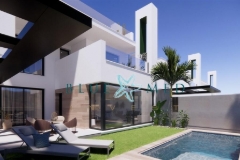 Luxe villa's met 3 slaapkamers en privézwembad in San JavierDeze moderne villa's liggen in een rustige woonwijk van San Javier, Murcia, bekend om zijn warme winters, zachte mediterrane briesjes en de nabijheid van zowel zandstranden als het bruisende lokale leven. De omgeving biedt een rustige levensstijl met uitstekende verbindingen naar recreatiemogelijkheden, restaurants en winkels.Lokale supermarkten, winkels en restaurants bevinden zich op minder dan 0,4 km afstand. Zandstranden en de boulevard van Santiago de la Ribera liggen op ongeveer 2 km afstand. De Club Náutico ligt op 6 km afstand en gerenommeerde golfbanen op ongeveer 8 km. Los Alcazares ligt op 8,5 km, San Pedro del Pinatar op 9 km en Cartagena op 35 km. De internationale luchthaven van Murcia ligt op ongeveer 34 km afstand en de luchthaven van Alicante op ongeveer 86 km.De villa's te koop in San Javier Murcia maken deel uit van een exclusieve woonwijk met heldere, kubusvormige architectonische lijnen. Elke villa staat op een ruim perceel met aangelegde tuinen, een automatische toegangspoort en een privézwembad van 9 x 4 m. Het buitenleven wordt versterkt door een speciale tuinwasruimte, irrigatie- en verlichtingssystemen.Binnen beschikken de villa's over drie ruime slaapkamers, waaronder een master suite met kleedkamer en en-suite badkamer. De open keuken is uitgerust met hoogwaardige apparatuur en sluit naadloos aan op de woon- en eetkamer via grote ramen, wat zorgt voor veel natuurlijk licht. Extra voorzieningen zijn onder andere drie complete badkamers, een aparte wasruimte, berging, airconditioning en verwarming. Hoogwaardige afwerkingen, thermische en akoestische isolatie en aanpasbare ontwerpopties zorgen voor comfort het hele jaar door. RMU-00276 En savoir plus ?