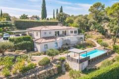 Moderne villa van 185 m² woonoppervlak in nieuwstaat op een perceel van 2.000 m² met panoramisch uitzicht. Gesitueerd in een rustige woonwijk. Elegantie, licht en comfort en omgeven door een zorgvuldig aangelegde tuin met prachtige olijfbomen. Prachtig plekje in de bewoonde wereld op korte afstand van het centrum. Indeling villa met op de begane grond een entree, toilet, ruime woon-/eetkamer van 40 m², zeer licht dankzij de grote erkers die uitkomen op een terras van 55 m² met een prachtig panoramisch uitzicht, keuken, bijkeuken, 3 slaapkamers (waarvan één met kleedkamer), een gedeelde badkamer met o.a. douche en twee aparte toiletten. Op tuinniveau (onderste verdieping) twee slaapkamers, een badkamer, een kelder en een apart toilet, ideaal voor het ontvangen van gasten of om te bouwen tot extra woonruimte of opslagruimte. Dubbele carport. Exterieur en voorzieningen : omkeerbare vloerverwarming via een warmtepomp (warm/koud), centraal stofzuigsysteem, elektrische rolluiken en jaloezieën, elektrolyse waterzuiveringssysteem, thermodynamische boiler, houtkachel, alarm, geventileerde kruipruimte en een micro-afvalwaterzuiveringsinstallatie. Energielabel A/A. Een harmonieuze, ruime en volledig uitgeruste woonomgeving in een gewilde buurt die bekend staat om zijn rust en kwaliteit van leven En savoir plus ?