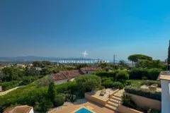 A VENDRE EN EXCLUSIVITE, Villa de style 'provençal' avec une très jolie vue mer sur la Baie de Saint-Raphaël. Elle propose de plain-pied un lumineux séjour avec une cheminée, belle hauteur sous plafond 'cathédral', une salle à manger, une cuisine contemporaine équipée et aménagée, 2 grandes chambres dont une ouverte sur une véranda prolongée par une agréable terrasse, une salle de bains et une chambre/ou bureau. Ces espaces de vie sont prolongés par de larges terrasses semi-couvertes. A l'étage, deux chambres en suite dont la master avec une vue panoramique sur les collines et la mer, salle de douche et dressing, ainsi que sa terrasse. Un jardin superbement paysagé, organisé autour d'une piscine au sel chauffée. Une cuisine d'été, une cave, un garage et des places de parking extérieures viennent compléter cette propriété La villa peut s'envisager meublée ! UN BEAU COUP DE COEUR En savoir plus ?