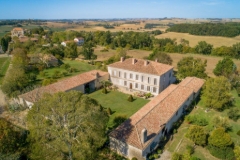 CO-EXCLUSIVITEIT: Schitterend zeventiende-eeuws Manoir/landgoed , gelegen aan de rand van zo'n typisch Gascogne-dorp, met een restaurant en een geweldig centraal kasteel. Door de bijgebouwen ontstaat een zalig hofje en het majestueuze hekwerk omarmt de voortuin. De rijkdom aan originele elementen , zoals een opmerkelijke trap, enorme schouwen, antieke muurkunst en imposante balken, zijn tijdens de renovatie, waarbij niets onaangeroerd bleef, goed bewaard gebleven. Het Manoir beschikt over 3 ruime slaapkamers en er is tevens een onafhankelijk gastenverblijf met 2 slaapkamers in een van de bijgebouwen. Hier is voldoende ruimte voor uitbrieding met meer gastenverblijven. Midden in de aangelegde parktuin met volwassen bomen bevindt zich het zwembad Een uitzonderlijk pand en dito locatie. Gelegen op 9.200 m² grond aan de rand van een rustig dorpje in de Gascogne. Op 65 minuten van de internationale luchthaven van Toulouse en 9 minuten naar de eerste voorzieningen. Op 45 minuten naar het TGV-station in Agen. Indeling Landhuis/Manoir (435 m² woonoppervak) met op de begane grond een entree/hal (13 m²) met stenen trap naar boven, woon/eetkamer (57 m²) met open haard met balken, grote ramen, eetkeuken van 26 m², bijkeuken (29 m²), bibliotheek (39 m²) en een nog te renoveren ruimte van 33 m². Op de eerste verdieping bevindt zich de hoofdslaapkamer van maar liefst 57 m² met ensuite badkamer, tweede badkamer van 26 m² met o.a. ligbad, douche, toilet, bidet en wastafel, de tweede slaapkamer van 39 m² met ensuite badkamer, derde badkamer (11 m²) met o.a. ligbad, toilet, bidet en wastafel, kantoorruimte/slaapkamer/kleedkamer (21 m²), tevens toegang tot badkamer en de derde slaapkamer 22 m² met ensuite badkamer (7,4 m²). Tweede woonkamer/salon van 27 m², toegankelijk via aparte trap. Het gastenverblijf (120 m² woonoppervlak) heeft op de begane grond een woonkamer (27 m²), eetkamer (22 m²), keuken (20 m²). Er zijn 2 slaapkamers (20 m² en 23 m²) met elk een ensuite badkamer Rond 1980 werd alles volledig gerenoveerd. Het geheel is zeer goed onderhouden. Ramen grotendeels enkel glas. Fraai, privé gelegen zwembad van 12,5 bij 6,5 meter. Waterput voor het besproeien van de tuin. Verder is er een schuur (280 m²), een werkplaats en tweede schuur (370 m²). Wat een geweldige sfeer, zowel binnen als buiten. En savoir plus ?