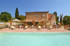 Podere Il Tramonto | This farmhouse is surrounded by a breathtaking view of the Tuscan countryside with its rustic charm. It features an outdoor swimming pool and a large garden with terrace. With its spacious layout, this house offers all the comfort and cosiness you are looking for. The ground floor provides you with two bedrooms, each with its own bathroom. The kitchen is connected via a corridor to the spacious living and dining room with fireplace. Through the patio doors you step out onto the charming portico, where you can enjoy al fresco meals and the most picturesque sunsets. On the first floor, which can be reached via an internal staircase as well as an external stone staircase, there is an independent apartment, which consists of a kitchenette, dining area, terrace, bedroom and bathroom. This apartment is perfect for guests or for rental. A spacious master bedroom with bathroom and panoramic terrace completes the top floor. This farmhouse is suitable for a home in Tuscany but also for tourist rental. This is a place to love, ideal for those looking for tranquillity and natural surroundings, yet not isolated. En savoir plus ?
