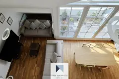 Situé dans le village très recherché et dynamique de Junglinster, aux 3ième et 4ème étages de la Résidence Ravel (avec ascenseur), cet appartement-duplex avec 2 balcons bénéficie d'une surface habitable de ± 126 m² pour une surface totale ± 143 m². Il est idéal pour un couple avec ou sans enfants, un premier achat ou pour un investissement et se compose comme suit. Au 3ième étage, le hall d'entrée de ± 4 m² dessert d'un côté un séjour salon/salle à manger de ± 28 m² avec accès à un balcon de ± 5 m² (belle vue dégagée) ainsi qu'une cuisine équipée et aménagée de ± 7 m² (four, micro-ondes, cuisinière à induction, hotte aspirante, frigidaire, lave-vaisselle, plan de travail en granit, table bar rattachée au plan de travail, équipements AEG). De l'autre côté, le hall donne sur un couloir de nuit de ± 2 m² qui dessert 2 chambres de ± 14 m² dont une avec un balcon de ± 6 m², une buanderie de ± 3 m² (anciennement une salle de douche) ainsi qu'un WC séparé de ± 1 m² complètent l'étage. Au 4ième étage l'escalier en colimaçon dessert une mezzanine (possibilité d'aménager un espace bureau ou lecture), une chambre parentale de ± 25 m², une salle de bain de ± 3 m² (baignoire, lavabo, miroir, chauffe-serviettes, WC). Le sous-sol, comprend un emplacement intérieur de parking de ± 13 m² ainsi qu'une cave de ± 5 m². L'offre se complète avec un emplacement de parking extérieur. Possibilité de louer jusqu'à 3 emplacements supplémentaires (2 à l'intérieur et 1 à l'extérieur). Généralités : - Résidence de 1990, appartement rénové en 2018 (étanchéité des balcons, toiture en ardoise naturelle, portes fenêtres *TEBA* bois et Alu, vélux, sols (chambre du bas), cuisine de 2012, porte du garage électrique de 2022, motorisation de l'ascenseur changé en 2019); - Passeport énergétique F ? F, charges: ± 490€ / mois (eau, chauffage, frais de la résidence); - Chaudière au mazout, chauffage par radiateurs; - Fenêtres châssis bois/alu avec double vitrage, volets manuels, moustiquaires; - Adoucisseur d'eau, fibre optique, spots encastrés; - Junglinster est une commune dynamique dotée de nombreux commerces et services tels que transports publics de et vers Luxembourg-ville, crèches, écoles (dont l'école internationale), centre sportif, pharmacie, médecins, poste, restaurants du centre de Junglinster accessibles à pied, ? ; Agent responsable: Nora Avdic au ### ou ### English version: Located in the highly sought-after and dynamic village of Junglinster, on the 3rd and 4th floors of the Résidence Ravel (with lift), this two-bedroom flat with 3 balconies has 126 m² of living space and a total surface area of 143 m². It is ideal for a couple with or without children, a first-time buyer or an investment and is composed as follows. On the 3rd floor, the ± 4 m² entrance hall leads on one side to a ± 28 m² living/dining room with access to a ± 5 m² balcony (beautiful unobstructed view) and a ± 7 m² fitted and equipped kitchen (oven, microwave, induction hob, extractor hood, fridge, dishwasher, granite worktop, bar table attached to the worktop, AEG equipment). On the other side, the hall opens onto a ± 2 m² corridor leading to 2 bedrooms of ± 14 m², one of which has a ± 6 m² balcony, a ± 3 m² utility room (formerly a shower room) and a separate ± 1 m² WC complete the first floor. On the 4th floor, the spiral staircase leads to a mezzanine (which could be converted into a study or reading area), a 25 m² master bedroom and a 3 m² bathroom (bath, washbasin, mirror, towel warmer, WC). The basement includes a 13 m² indoor parking space and a 5 m² cellar. The offer is completed with an outdoor parking space. It is possible to rent up to 3 additional parking spaces (2 inside and 1 outside). General information: - Residence built in 1990, flat renovated in 2018 (waterproofing of balconies, natural slate roof, *TEBA* wood and aluminium window doors, velux window, floors (downstairs bedroom), kitchen built in 2012, electric garage door built in 2022, lift motorisation changed in 2019); - Energy passport F ? F, charges: ± 490€ / month (water, heating, residence costs); - Oil-fired boiler, radiator heating; - Wood/aluminium windows with double glazing, manual shutters, mosquito nets; - Water softener, fibre optics, recessed spotlights; - Junglinster is a dynamic community with a wide range of shops and services, including public transport to and from Luxembourg City, crèches, schools (including the international school), a sports centre, pharmacy, doctors, post office and restaurants within walking distance of the centre of Junglinster; Contact: Nora Avdic on ### or ### En savoir plus ?