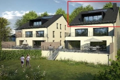 LAROCHETTE Description Penthouse neuf n° 03B d'une superficie habitable de /- 84,56 m2 avec une terrasse de /- 4,41 m2 situé au 2ème et dernier étage (combles) du bâtiment '67B' de cette nouvelle résidence "LAROCHETTE" composée de 6 appartements répartis en 2 blocs de 3 niveaux et située dans le magnifique village de Larochette offrant à ses occupants, de par sa situation et son architecture contemporaine, une qualité de vie exceptionnelle proche de la nature et de toutes commodités. Ce bien se compose : d'un hall d'entrée, d'une cuisine à équiper ouverte sur un séjour de /- 24,93 m2 avec accès à la terrasse de /- 4,41 m2, de 2 chambres à coucher ( /- 13,56 m2 et /- 13,94 m2) et d'une salle de bain avec WC de /- 5,59 m2 Une cave ainsi qu'un emplacement dans une buanderie commune complètent ce bien. Possibilité d'acquérir un emplacement de parking extérieur à partir de 12.000,- Euros et/ou un emplacement de parking intérieur à partir de 27.000,- Les prix de vente sont affichés avec une TVA 3% incluse. Pour plus d'informations veuillez nous contacter. ### ou 621323127 En savoir plus ?