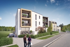 Wiesen-Piront vous propose en vente: Un appartement avec 3 chambres à coucher et jardin privatif au rez-de-chaussée d'une nouvelle résidence à construire au coeur de Leudelange, avec un accès facile aux transports publics, aux commodités locales de la commune, magasins, restaurants, centres sportifs ainsi que l'école primaire. *** Site internet: residence-djoko.lu *** La résidence se distingue par sa classe de performance énergétique A et est conforme aux nouvelles normes PMR (personnes à mobilité réduite) L'appartement N°3 se situe au rez-de-chaussée de la résidence et dispose d'une surface totale de 105m2 et profite d'une terrasse de 18 m2 et d'un jardin privatif de 1,3 ares. L'appartement se compose comme suit: - un hall d'entrée, - une salle de bains, - 3 chambres à coucher, - un WC séparé. - une buanderie privée, - une cuisine ouverte donnant sur le salon avec accès à la terrasse de 18 m2. De plus, le bien profite d’une cave privée et d'un emplacement de parking au sous-sol et d'une emplacement de parking extérieur. Equipements techniques: - Chauffage: Pompe à chaleur, - Classe énergétique: A - Triple vitrage avec châssis de fenêtre en ALU, - Revêtement au sol: parquet + carrelage. Prix: 1.046.011€ TTC (3% & 17% TVA incluse) *) sous condition d’acceptation par l’Administration de l’Enregistrement. ---------- Wiesen-Piront offers you for sale: A 3-bedroom flat with private garden on the ground floor of a new residence to be built in the heart of Leudelange, with easy access to public transport, local amenities, shops, restaurants, sports centres and the primary school. *** Website: residence-djoko.lu *** The residence is distinguished by its A energy performance class and complies with the new PMR (people with reduced mobility) standards. Flat No. 3 is located on the ground floor of the residence and has a total surface area of 105m2, with an 18 m2 terrace and a private garden of 1.3 ares. The flat comprises - an entrance hall, - a bathroom - 3 bedrooms - a separate WC - a private laundry room - an open-plan kitchen opening onto the living room with access to the 18 m2 terrace. The property also benefits from a private cellar, a basement parking space and an outdoor parking space. Technical equipment: - Heating: Heat pump, - Energy class: A - Triple glazing with ALU window frames, - Floor covering: parquet + tiles. Price: 1.046.011€ incl. VAT (3% & 17% VAT included) *) subject to acceptance by the Registration Authority. En savoir plus ?
