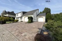Élégante villa contemporaine avec magnifique jardin paysager à vendre dans le domaine prisé de la Haard à Bettange-sur-Mess Cette propriété, remarquablement bien entretenue et décorée avec soin, offre des prestations de qualité et se compose comme suit : Rez-de-chaussée / niveau jardin (sol en pierre naturelle) : Spacieux hall d’entrée avec vestiaire et toilettes invités Vaste séjour traversant baigné de lumière, avec bibliothèque encastrée et cheminée au bois ; accès de plain-pied à la terrasse et au jardin par une large baie vitrée Cuisine indépendante, entièrement équipée, avec coin repas et accès direct à la terrasse Arrière-cuisine et local technique avec porte donnant sur le jardin Trois grands garages, complétés par plusieurs emplacements extérieurs devant Étage (accessible par un escalier en dur habillé de bois massif) : Parquet massif dans toutes les pièces Quatre belles chambres, dont une suite parentale avec dressing Salle de bains avec baignoire d’angle, double vasque, bidet et WC Salle d’eau avec douche à l’italienne, grande vasque et WC Grenier non aménagé accessible par une trappe au plafond Atouts supplémentaires : Fenêtres en triple vitrage (installées en 2020), avec petits bois décoratifs, équipées de moustiquaires et de volets battants Vide ventilé sous la maison Jardin fleuri soigneusement aménagé, agrémenté d’un charmant chalet en bois Idéalement située à proximité des commerces et des transports en commun, cette villa séduit par son confort, sa fonctionnalité et son environnement privilégié. En savoir plus ?