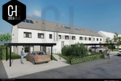 PRIX CONSTRUCTION GROS-ŒUVRE FERME!! Maison mitoyenne sur un terrain de 3.93ares avec une surface habitable de +/- 162m2 comprenant: Au rez-de-chaussée : - Carport pour 2 voitures - hall d'entrée - grand séjour - salle à manger avec cuisine & arrière cuisine avec accès vers la terrasse et le jardin - dressing - WC privatif -bureau- Au 1er étage : - hall de nuit - 4 grandes chambres à coucher – 1 WC - 2 salles de douches Aux combles : - brut -aménagement possible « Prix de vente annoncé avec une TVA 3% sous réserve d’acceptation de l’administration » Pour plus d’informations n’hésitez pas à contacter notre service commercial CREAHAUS SA : ### ou par mail : ### En savoir plus ?