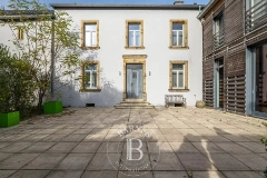 Nous vous proposons à la vente cette propriété d'exception située à Imbringen (Commune de Junglinster), à seulement 12km de Luxembourg-Kirchberg. Idéale pour les amoureux de la nature et située sur un terrain de +/- 21.21 ares, ce bien de plus de 800 m2 environ comprend : Une maison d’habitation entièrement rénovée en 2004 avec cour intérieure, ainsi qu'une grange attenante avec annexe et des écuries. Offrant une surface habitable de +/- 390 m2, la maison d’habitation se compose comme suit : Au rez-de-chaussée : un hall d'entrée, un bureau, une belle pièce de vie comprenant un salon avec cheminée, poutres apparentes et hauteur sous plafond, une salle à manger lumineuse avec vue dégagée sur une grande terrasse, et un jardin, une cuisine équipée indépendante, un second salon, une chambre d'hôtes et une salle de douche. A l'étage : un espace mezzanine, une suite parentale avec dressing et salle de bains avec wc, une seconde chambre avec salle de douche. Un petit séjour puis un hall desservant deux autres chambres et une salle de bains se trouvent dans l'autre aile. A l'extérieur : une piscine chauffée et un sauna, une annexe, une grange, un garage, un local technique et une buanderie. Beau potentiel d'extension ou d'aménagement, à savoir : - la grange et annexe en bureaux (zone mixte villageoise) ou en résidence de 8 unités d’habitation (+/-550 m2 net habitables), - les écuries en parking carport (x7) et environ 13 places de parking extérieures, - le terrain à morceler pour séparer la maison actuelle de la grange attenante (place à bâtir). En savoir plus ?