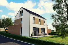 En future construction et située dans un NOUVEAU quartier EXCLUSIVEMENT résidentiel, SUPERBE Maison NEUVE (lot 5), présentant 4 « côtés libres », disposant d'une surface totale de +/- 195 m2 dont +/- 170 m2 habitables sur +/- 4.74 ares de terrain privatif, comprenant : Au rez-de-chaussée : - Hall d'accueil. - WC séparé. - Grand salon et salle à manger avec accès de plain-pied à la terrasse de +/- 33 m2 et au jardin (+ abris de jardin de +/- 5 m2 à l'extérieur). - Cuisine non équipée ouverte ou fermée sur salle à manger. - Local technique. - Garage pour 1 voiture + emplacements extérieurs. - 1 carport extérieurs (1 voiture). Au 1er étage : - Hall d'étage. - 1 suite parentale avec dressing et salle de bains privative. - 2 chambres à coucher. - Salle de bains principale. - Buanderie. Au 2ème étage : - Pièce polyvalente pouvant servir de 4eme et/ou 5eme chambre, bureau, salle de jeux, fitness ? Classe énergétique A/B : Chaudière pompe à chaleur avec chauffage par le sol / Triple vitrage et volets électriques / VMC double flux / revêtements des sols et muraux inclus et au choix des clients / et salles de bains complètes avec meuble lavabo au choix inclus. Les plans restent modifiables selon vos besoins et les nécessités techniques à respecter. Frais d'acte notarié applicables sur le montant de la quote-part de terrain. Application direct du taux de TVA à 3 %. Le prix annoncé s'entend TTC 3 %. En savoir plus ?