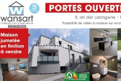 WANSART CONSTRUCTION vous propose une maison unifamiliale neuve, libre de trois côtés, d’une surface habitable de 200 m² (hors garages), érigée sur un terrain de 3,79 ares, située au 5, An der Laangwiss à Niederanven. Nichée dans un environnement calme, en fond d’impasse, cette maison moderne séduit par sa luminosité exceptionnelle, son excellente isolation et son architecture contemporaine. Elle se compose comme suit : ***PORTES OUVERTES le samedi 4 et le dimanche 5 Octobre de 14h à 18h et le 8 Octobre de 14h à 22h*** Nous serons ravis de vous accueillir et de répondre à toutes vos questions sur place. 5, An der Laangwiss L-6944 Niederanven En savoir plus ?