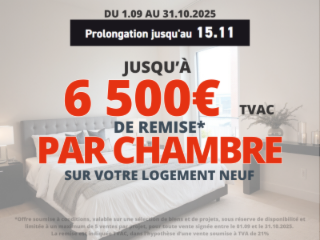 PROLONGATION jusqu'au 15/11> économisez jusqu’à 6 500 €* par chambre sur votre appartement neuf (PRIX AFFICHES REMISE DEDUITE). *Offre valable du 01.09 au 31.10.2025 et soumise à conditions > Toutes les infos et conditions sur www.thomas-piron.eu/lebonplan-appartement