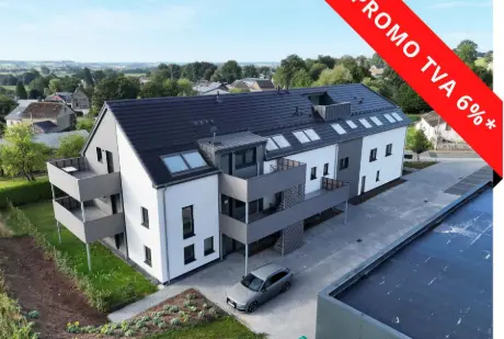 Bâtie sur un terrain de 4.500 m², cette nouvelle résidence allie performance énergétique, confort et parachèvements de qualité. Vous y trouverez neuf appartements de standing dans un cadre privilégié, bénéficiant d'excellents PEB et de finitions haut de gamme : cuisines full équipées, chauffage sol, ventilation de type C et peintures sont inclus dans le prix. Les menuiseries extérieures en PVC avec triple vitrage isolant et les portes d’entrée en aluminium avec triple vitrage garantissent un confort thermique et acoustique.