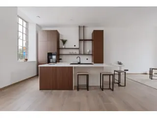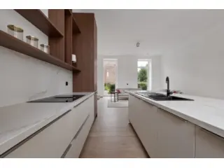 Situé au 207 Sint-Truidensesteenweg à Drieslinter, ce projet de transformation concerne une authentique fourchette historique, une vierkantshoeve protégée, située dans un cadre rural idyllique. L’initiative, appelée Projet Vuurmolen, consiste en la rénovation respectueuse de cette ancienne ferme, qui sera convertie en un ensemble résidentiel privé comprenant cinq maisons entièrement finies selon la norme BE (Bâtiment à Energie Nearly Zéro). Ces logements, répartis sur trois niveaux, proposent une superficie allant de 173 m² à 325 m² et disposent de deux à quatre chambres. Chaque habitation a été conçue pour allier le charme traditionnel du site avec des équipements modernes et une finition de haute qualité. Les maisons sont équipées de panneaux solaires, d’une pompe à chaleur avec chauffage par le sol, et d’un système de ventilation avec récupération de chaleur, assurant ainsi une faible consommation énergétique et un confort optimal. Les acheteurs peuvent personnaliser leur intérieur, notamment la cuisine et la salle de bain, avec des matériaux de qualité supérieure dans un budget généreux prévu à cet effet. Le projet comprend également des espaces communs agréables tels qu’une grande cour intérieure avec un bassin naturel, entourée d’un jardin professionnellement aménagé. Chaque maison dispose d’un espace extérieur privé accessible par une terrasse, et il est possible d’acheter une place de parking privée pour un supplément. La localisation offre une excellente accessibilité aux principales voies de communication telles que l’E40, ainsi qu’aux gares proches, tout en profitant de la quiétude et du caractère verdoyant de la région.