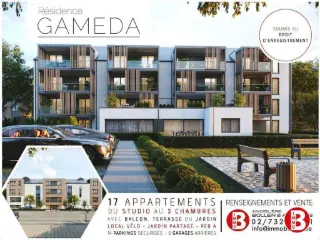 SOUMIS AU DROIT D'ENREGISTREMENT (12,5% maximum) JOURNEES PORTES OUVERTES les 17 – 18 – 19 MAI 2024 - SUR RDV Découvrez ce projet de rénovation de A à Z, à taille humaine, qui allie qualité, design, et nature, implanté dans un environnement résidentiel calme et en plein essor. La Résidence GAMEDA s'inscrit dans une recherche de modernité et de confort pour ses occupants. A proximité des grands axes, de la gare de Jambes, et à seulement 7 minutes du centre de Namur, l'emplacement de votre futur appartement au cœur de la commune est idéalement situé. Du studio au 3 chambres avec jardin, chaque appartement de la Résidence met à disposition de ses occupants, un espace extérieur privatif très confortable (Terrasse entre 9 et 14m² ou Jardin), un local à vélos, ainsi qu'un espace vert partagé. Pour toujours plus d'accessibilité et de confort, 5 non sécurisés, 9 Parkings sécurisés et 6 Garages sont proposés en supplément. Niveau finition : Cuisines IXINA personnalisables (même en état final d’achèvement), PEB A ou B, Chaudière au Gaz à condensation VAILLANT, Energies individuelles, Carrelage 60x60 et parquet semi-massif au sol, Buanderie technique pour chaque appartement, Châssis Allemands... Profitez des portes ouvertes pour découvrir le projet, son environnement, sa qualité et ses nombreux avantages valorisant sur le marché du neuf ! Vous voulez être sûr de nous rencontrer, PRENEZ RDV via : Contact ou au Tel 0472/59.51.81