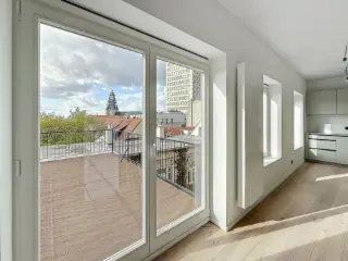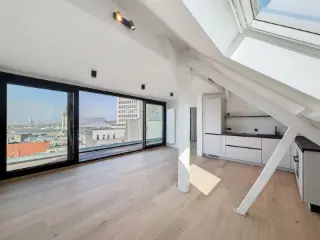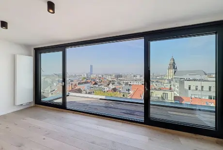En plein cœur du quartier du grand Sablon, dans un magnifique hôtel particulier du XIXe siècle, avec entrée cochère et cour intérieur commune, vente de 6 appartements de caractère entièrement remis à neufs en 2025 (1e occupation), finitions et matériaux de qualité, terrasses Sud-Ouest. La petite copropriété comprend au total 11 unités. Les 6 logements vendus sont situés au 2e, 3e et 4e étage de l’immeuble avant, accès via l’escalier d’honneur en chêne de style baroque, ils cumulent ± 400m² brut + terrasses ± 47m². Composition : 2E : duplex ± 98m² avec 2ch + balcon, studio ± 27m², appartement ± 76m² avec 2ch + terrasse ± 20m². Au 3E : appartement ± 55m² avec 1ch + balcons. Au 4E : penthouse/duplex ± 106m² (mesure au sol / mansardé) 2 ch + terrasse ± 17,5m² avec une vue exceptionnelle sur Bruxelles. Caves en sous-sol. Rénovation profonde avec isolation énergétique performante, matériaux nobles et équipements de qualité. Chaudières individuelles gaz, double vitrage, ventilations performantes. Idéalement situé à proximité de toutes commodités : quartier historique & dynamique, restaurants, parcs, shoppings.... Transports en commun : tram & Bus 33, 48, 52, 95, station de métro Louise, gare centrale. Annonce et indications non contractuelles, sous réserve de modifications. Info :   Contact   – Tel :          Tel    02 779 99 99     – ID 7180655