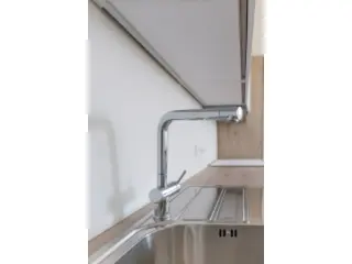En entrant, vous êtes accueilli dans un hall d'entrée spacieux avec des toilettes pour invités. L'espace de vie lumineux, avec de grandes fenêtres et de hauts plafonds, est baigné de lumière naturelle et offre un accès direct à l'agréable terrasse. Une cuisine séparée, entièrement équipée et dotée d'appareils électroménagers de haute qualité, se trouve à côté.