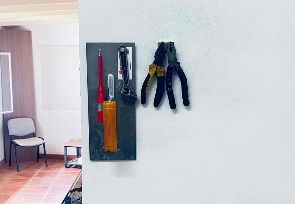 Marco’s idee ontstond uit een universele frustratie: waarom moeten we onze muren verminken zodra we iets aan de decoratie willen veranderen? In plaats van te blijven worstelen met de boormachine heeft deze toekomstige industrieel ingenieur een ferromagnetische coating ontwikkeld die je aanbrengt zoals een klassieke pleisterlaag. Het concept is verbluffend eenvoudig: je ontvangt een zakje poeder, voegt water toe en smeert het op je oppervlak. Eens droog wordt de muur geen reusachtige magneet die je autosleutels aantrekt of je pacemaker ontregelt… maar wel een oppervlak dat magneten kan aantrekken! Om alles echt goed te laten houden, wordt wel aangeraden om een kleine neodymium magneet achter je voorwerp te kleven.