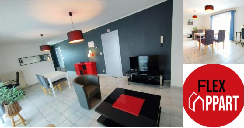 Cet appartement meublé 2 chambres avec garage 1 voiture privé est situé dans une rue calme à 11 kms de Mons capitale européenne de la culture 2015, 8 kms du centre de La Louvière, 25 kms de Maubeuge et 35 kms de Charleroi, à Maurage (commune de La Louvière). Il se trouve au premier étage d’un immeuble moderne. Description Cet appartement meublé très confortable, de conception moderne et spacieuse (85m2) d’une capacité de 3 personnes est composé de: cuisine équipée, plaque de cuisson vitrocéramique, four conventionnel et micro-ondes, réfrigérateur et congélateur, cafetière, grille-p(hidden)ouilloire, vaisselle et tous les ustensiles usuels pour cuisiner vos plats préférés. salon-salle à manger spacieux et lumineux avec table à manger et 4 chaises , table de salon et fauteuils, bureau et sa chaise. TV câblée (télédistribution; 70 chaînes). accès internet wifi. salle de bains avec baignoire/douche, évier et wc. grande buanderie avec machine à laver. Première grande chambre avec deux lits 1 personne. Deuxième chambre avec lit 1 personne, pouvant également faire office de bureau aspirateur sans sac et nécessaire de nettoyage. double vitrage, chauffage central au gaz. garage fermé pour 1 voiture dans le même immeuble, compris dans le prix Les consommations gaz, eau et électricité sont à payer au prix du marché. Relevés des compteurs à l'arrivée et au départ. Il vous sera demandé de payer une provision. Une caution sera à payer en fonction de la durée du séjour. Nous serons heureux de vous accueillir! FLEXappart