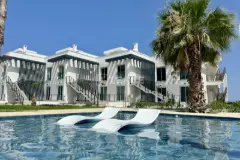 Leven aan het strand in appartementen in Gazimagusa TatlisuAppartementen in Tatlisu Gazimagusa bieden een schilderachtig uitzicht. Tatlisu is een prachtige mediterrane stad in de buurt van Gazimagusa en Girne. Het gebied werd Cittaslow in 2019 en werd een schat voor investeerders. Het feit dat Tatlisu op korte rijafstand van de stadscentra ligt, is een grote hulp voor zijn populariteit.Appartementen te koop in Noord-Cyprus Tatlisu aan het strand liggen op 3,5 km van de markten, 10 km van Tatlisu Center, 32 km van Iskele, 34 km van Karpaz Gate Marina, 36 km van Girne, 46 km van Bafra Toeristisch Centrum, 46,5 km van Gazimagusa, 49 km van Ercan Internationale Luchthaven, 60 km van Karpaz en 73,5 km van Larnaca Internationale Luchthaven.Het goed ontwikkelde complex is gebouwd op 6000 m² grond en heeft 5 blokken met in totaal 43 appartementen. Het complex heeft sociale faciliteiten zoals een zwembad, yogaruimte, tennisbaan, café en bar. Een professionele gemeenschapsdirecteur biedt diensten als schoonmaak, onderhoud en reparatie. Chique appartementen hebben slaapkamers, woonkamers, open keukens, eigen badkamers en gedeelde badkamers.De appartementen op de begane grond hebben een tuinterras en de appartementen op de bovenste verdiepingen hebben een dakterras. De badkamers hebben vloerverwarming. De appartementen zijn uitgerust met airconditioning, een centraal satellietsysteem, internetinfrastructuur, keukenkasten en garderobekasten. ECN-00075 Meer weten?